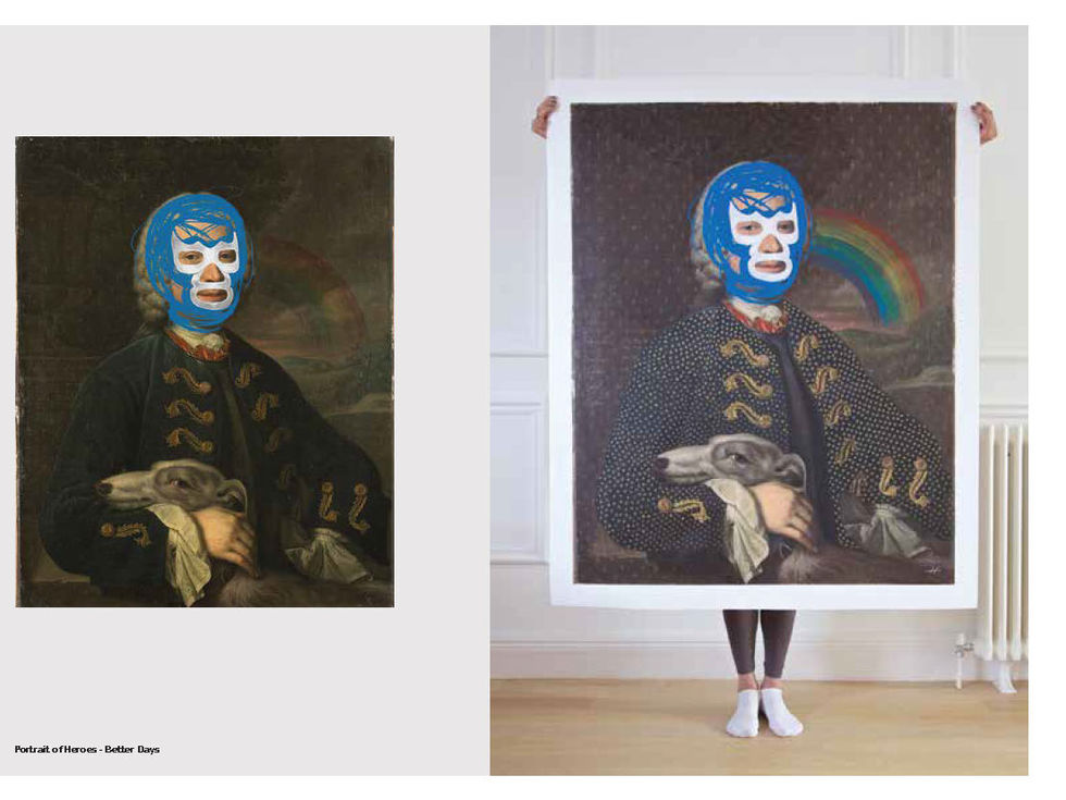 Inspired by master painted portraits, this piece above sets out to reveal how classical art was often a means for wealthy individuals to portray their alter ego. It playfully suggests that perhaps the classical portrait artists were the photoshop and Instagram filter of their time.